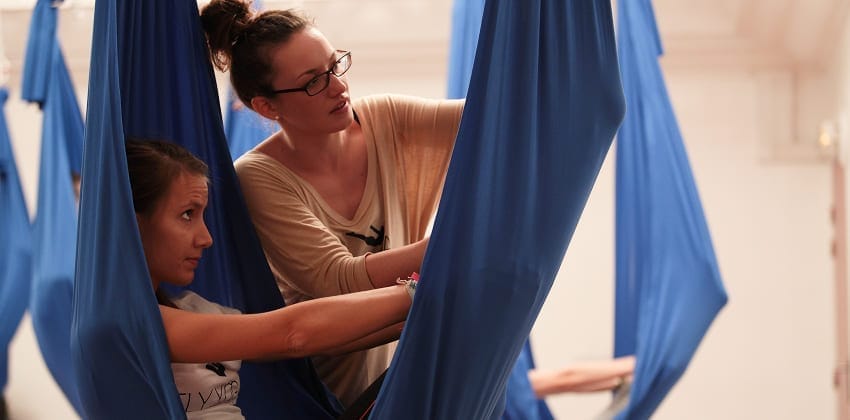 Par Florie Ravinet fondatrice de la seule formation de yoga aérien à visée thérapeutique